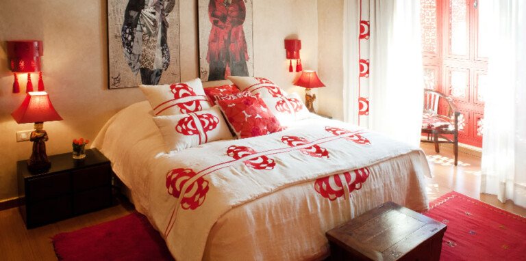 La palmeraie de Marrakech vous propose des matinées d’or et de rose au sein de l’hôtel Marrakech Tigmiza ! Le rouge pavoise des murs et le fond en demi-teintes est décliné en couleur orange ocre et mauve pour le plus grand…