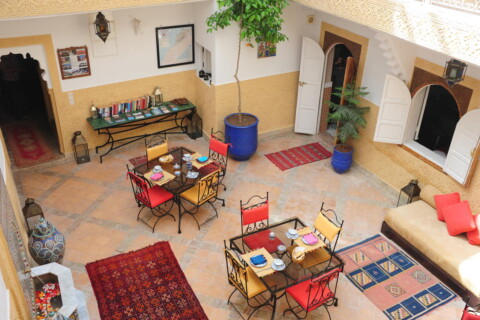 Une oasis cachée raffinement au cœur de la médina, dans une ruelle à Sidi Ben Slimane, l’un des anciens quartiers de la ville ocre. Calme, authenticité, charme, originale, des prestations de haute qualité pour faire plaisir à tous les sens, invitent les hôtes à voyager dans un monde hors commun. Romantique est le mot maitre des 9 chambres et 7 suites du Riad, c’est des véritables refuges de détente aux tons chaleureux, décorées dans le style oriental qui reflète le splendide passée. Une atmosphère digne d’une merveilleuse conte de mille et une nuits se débute dès le fastueux patio et se poursuit jusqu’à les magnifiques salons. Un restaurant, une terrasse et un espace de bien-être sont aussi proposés. Amina est un Riad confort à Marrakech qui vous promet une expérience inédite au milieu de l’effervescence de la ville rouge.