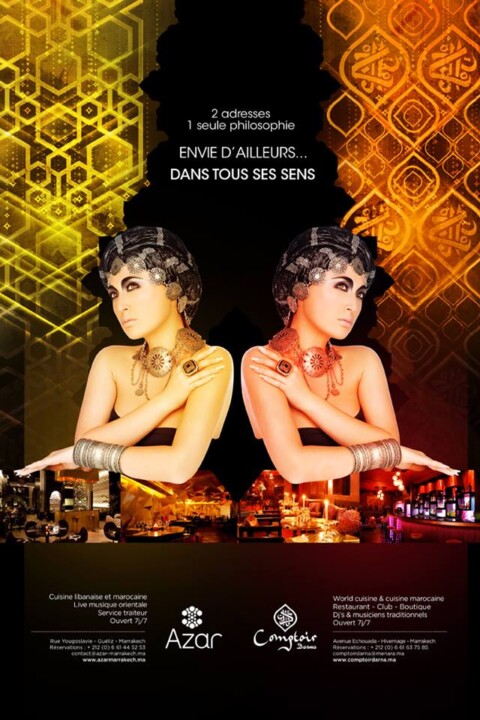 Le cadre du restaurant est tout simplement fabuleux, l’atmosphère est digne des contes enchantés des mille et une nuits et l’aura romantique du coin transcende tout ce que vous avez pu expérimenter auparavant. Les sorties en couple sont parfaites pour le Comptoir, des roses à l’odeur orientale et un orchestre talentueux vous accueille pour des dîners délicieux en tête à tête où les maîtres mots sont harmonie et amour féerique lors de soirées sublimes à la lueur du ciel marrakchi étoilé. Ne vous inquiétez pas si vous êtes un passionné des nuits DJs, le Comptoir Darna c’est aussi une discothèque de renom et une véritable institution nocturne de la ville ocre qui vous met en évidence des soirées colorées aux cocktails divers et très appréciables.
