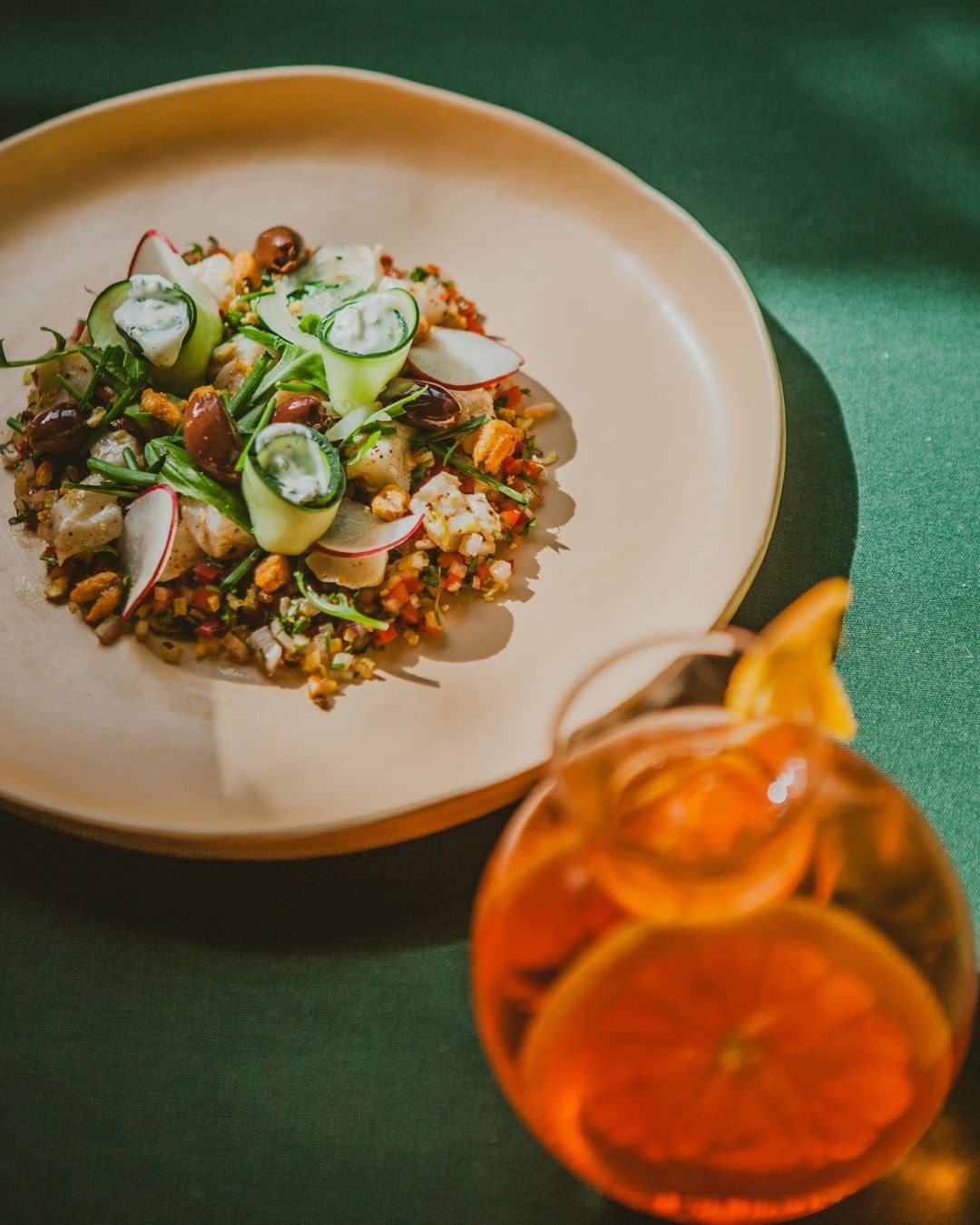 Restaurant Comptoir Darna propose une cuisine méditerranéenne fusionnée avec des saveurs marocaines authentiques. Les plats sont préparés avec des ingrédients frais et de qualité, et sont présentés avec soin et créativité.