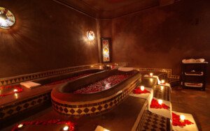 Lors d’une journée chaleureuse à la ville, quoi de mieux que d’aller se rafraîchir et détendre en plein cœur de la médina à travers un endroit voluptueux connu par Les Bains de l’Alhambra. Cet établissement un havre de paix original, l’un des grands spas qui propose des soins orientaux hauts de gamme dans un cadre digne à mille et une nuits. Dans une ambiance romantique, bougies et pétales de fleurs, les bains Marrakech de l’Alhambra, vous invite à goûter les bienfaits du sel et huiles de bains. Et en plein cœur de ce cocon, un hammam beldi vous invite à une belle expérience où vous retrouvez une nouvelle peau grâce un gommage au savon noir et vous découvrez les rituels traditionnels d’un hammam marocain.