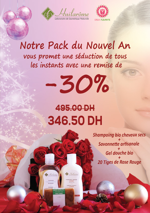 Ereka Fleuriste vous propose une offre exceptionnelle avec une réduction de -30% sur deux produits à votre choix : bouquet de roses rouges+ boule de chocolat ou bouquet de roses rouges+ produits cosmétique de huilarome.