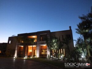 Marrakech est une belle ville qui vous offre tout un ensemble de logements de luxe pour profiter de vacances inédites au sein d’un cadre joyeux et intime en compagnie de votre famille. Logicimmo votre premier site web dédié au secteur de l’immobilier au Maroc vous présente cette sublime villa de maître mise en vente au bab atlas et située à seulement 15 minutes du centre ville, sans vis-à-vis ! Vous allez disposer d’une grande superficie de 1000 m2 au milieu d’un terrain arboré qui à son tour jouit d’une superficie gigantesque de 5000 m2 ! A l’intérieur, vous avez à votre disposition un triple salon au style purement marocain et décoré avec des grandes baies vitrées et qui donne un accès direct sur le beau jardin verdoyant, une salle à manger spacieuse ainsi que six chambres dont l’une est parentale sont mises à votre usage.