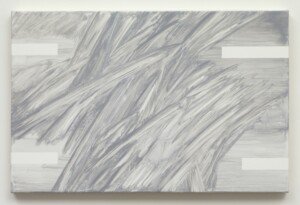 Cela ne devient pas plus abstrait que les peintures de Robert Holyhead. Ses petites pièces jouent souvent avec la structure de la toile, l’espace négatif et la géométrie simple. De la peinture essuyée aux traits fluides, les pièces reflètent la main de l’artiste, mais se sentent parfois fragmentaires ou inachevées. C’est un travail sur la peinture elle-même.