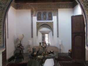Ceci est quelque chose d’autre. Il dispose d’un salon central large, haut avec deux chambres communicantes – qui sont toutes bénies avec le vieux travail du bois Zouaki absolument exquis et les travaux de plâtre sculpté.