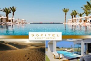 Hôtel Sofitel Essaouira Mogador Golf & Spa comporte 140 chambres, 7 suites, deux piscines, dont l’une est chauffée et l’autre est bio, qui se filtrent avec des plantes aquatiques, 28 prestigieuses villas composées d’un salon et 2 chambres bien décorées, ainsi qu’un joli jardin avec piscine chauffée.
