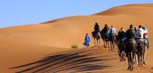 La balade en chameaux vous attend une fois arrivés à Zagora pour contempler du coucher du soleil au-dessus des dunes ! ClickExcursions est votre chemin menant vers l’enchantement du désert !