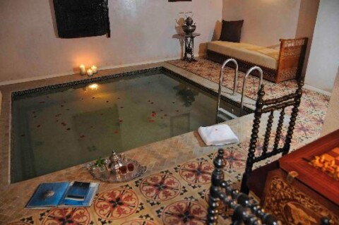 Cette cour centrale est entourée par un autre salon, un bureau et trois chambres, toutes avec salles de bains et dotées d’un très beau hammam supplémentaire.