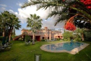 Royaume immobilier est votre service pour toutes vos transactions immobilières au Maroc que ce soit pour l’achat, la vente ou la location. Notre portail en ligne vous présente chaque jour des biens immobiliers de prestige et de qualité. La Parle de Sud est une destination touristique réputée par son climat chaleureux, sa luminosité et son luxe raffiné. Pour ceux qui cherchent à devenir propriétaire d’un établissement de charme à cette cité envoûtante, Royaume Immobilier vous annonce cette vente Riad Marrakech exceptionnelle. Il s’agit de la célèbre maison d’hôtes « La villa des Trois Golfs », un trésor situé au cœur de la palmeraie, sur une surface de 13 000 m², dont 1100 m² est habitable alliée charme et confort. La villa comprend un grand jardin avec une belle piscine chauffée en hiver et un hammam beldi pour se ressourcer et détendre, un court de tennis et parking, comme elle vous garantit une sécurité totale jour et nuit grâce à une équipe de sécurité.