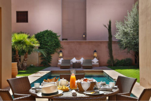 Tigmiza Suites & Pavillons un hôtel 5 étoiles à Marrakech qui ressemble une charmante kasbah plantée en harmonie dans une oasis de fraicheur en plain cœur de la palmeraie. Murs extérieurs au couleur de terre, fauteuils, rideaux, lits, tableaux d’art et quelques articles de décoration aux charmantes déclinaisons de couleurs, sans oublier l’ambiance chaleureuse et élégante qui habille tous les coins. L’hôtel prestigieux de Tigmiza est entièrement décoré avec un grand soin à fin de donner aux hôtes une véritable impression d’espace. Pour passer une nuit enquise vous pouvez opter pour l’une de ses 10 suites luxueuses, dans lesquelles l’atmosphère est unique, mélangeant les mobiliers authentiques, les mémoires et les tableaux d’art incontournables, les objets de décoration traditionnelle et moderne d’ici et d’ailleurs, sont chinés avec passion.